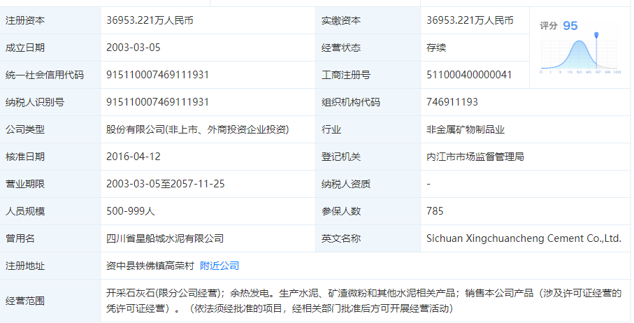 天眼查相關數據顯示:企業(yè)注冊地址位于資中縣鐵佛鎮(zhèn)高榮村,經營范圍為開采石灰石,余熱發(fā)電,生產水泥,礦渣微粉和其他水泥相關產品。