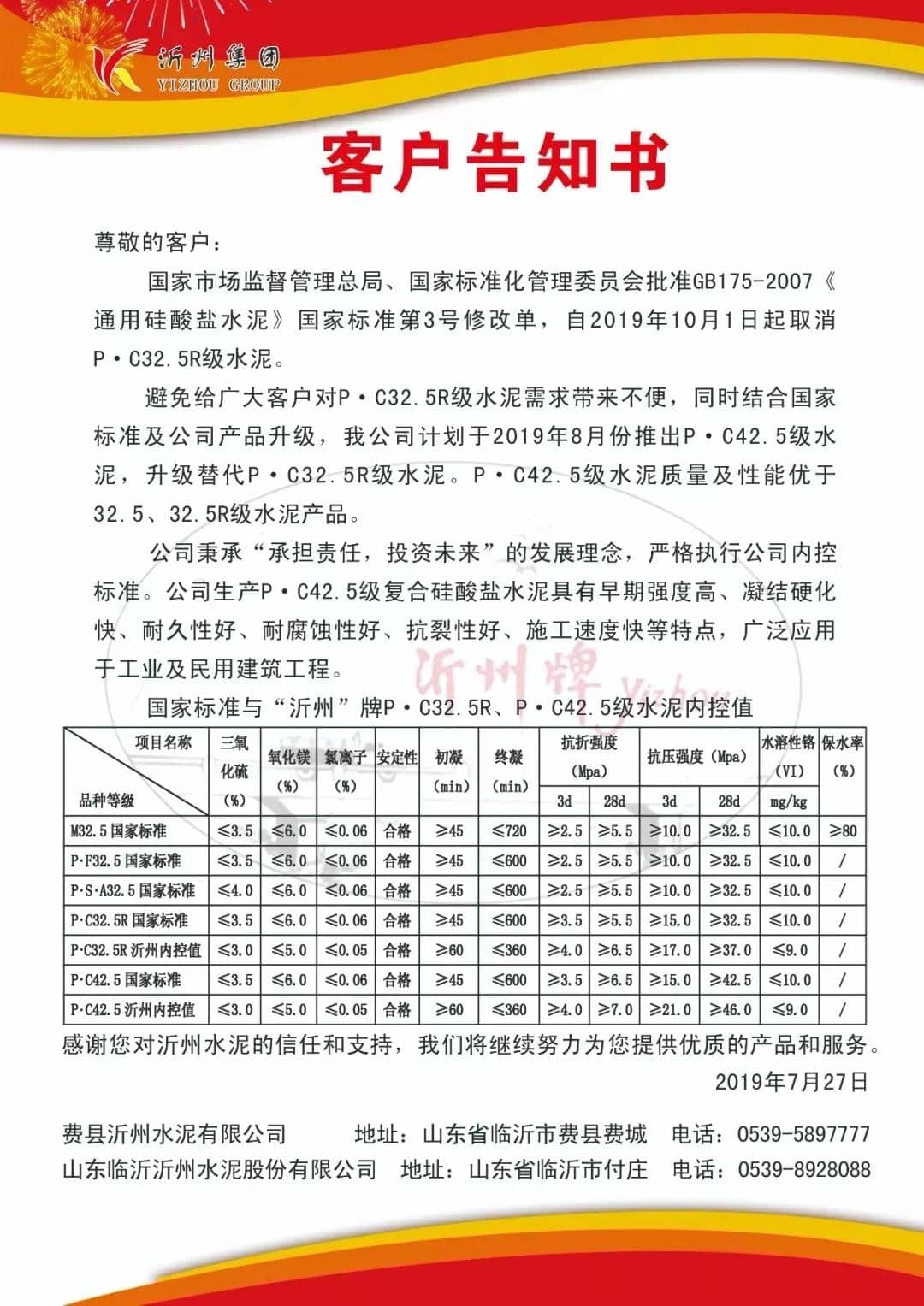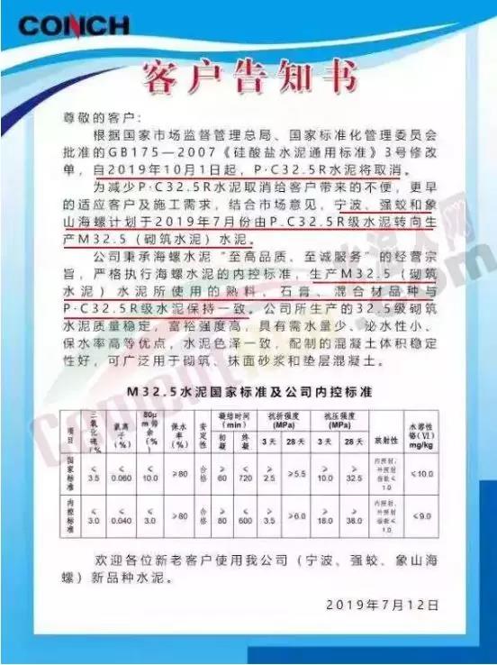 堯柏集團M32.5砌筑水泥客戶告知書