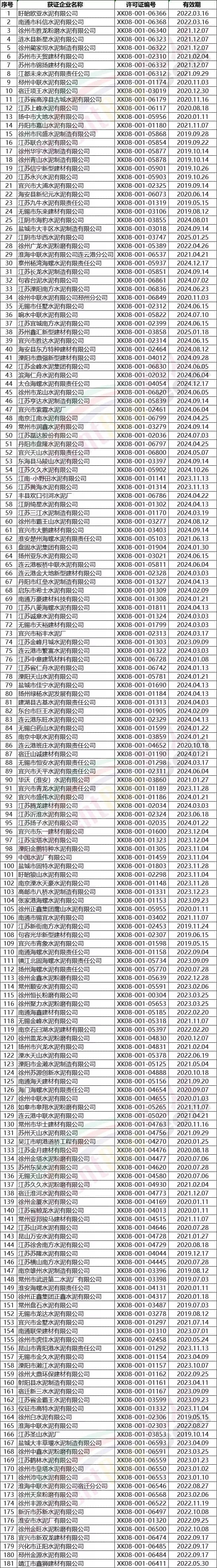 江蘇省部分水泥企業(yè)名單