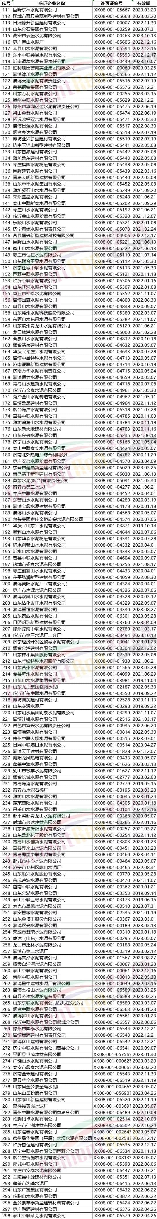 附:臺灣、福建、浙江、上海、江蘇、山東、河北、天津、遼寧水泥企業(yè)名單