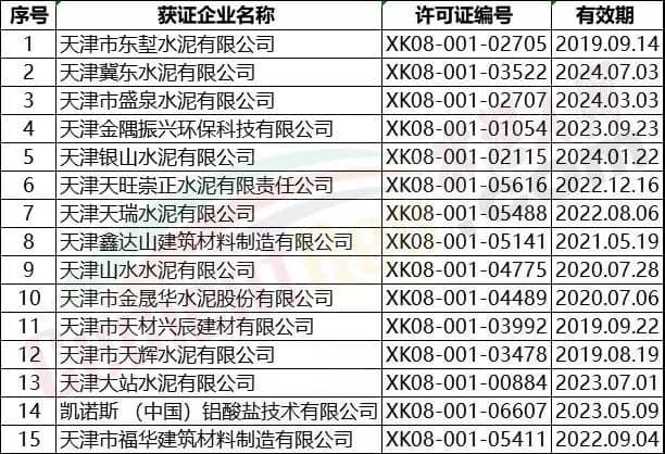 天津市部分水泥企業(yè)名單