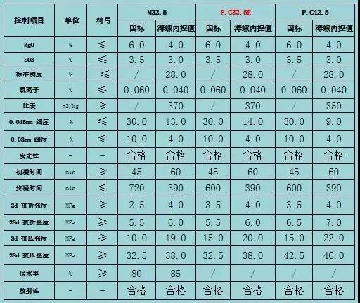 浙江區(qū)域海螺水泥M32.5水泥內(nèi)控標(biāo)準(zhǔn)與P.C32.5R國家標(biāo)準(zhǔn)要求對比