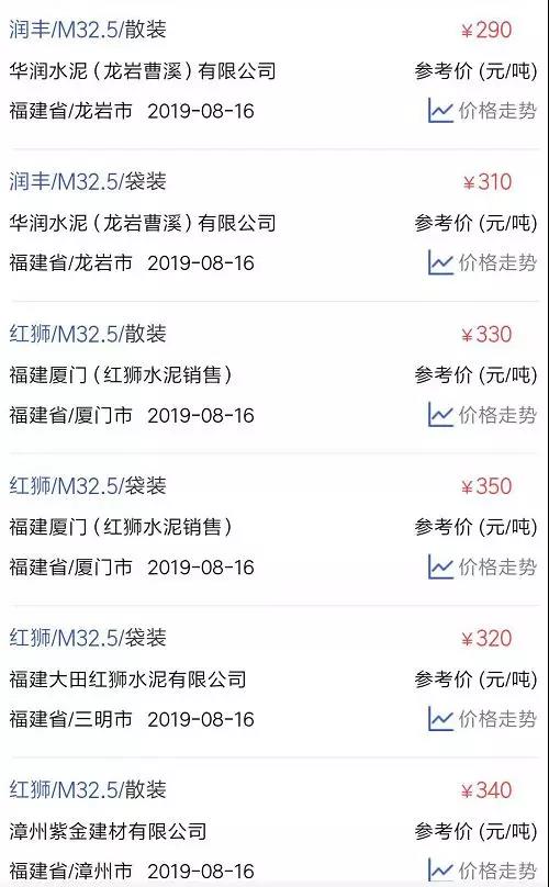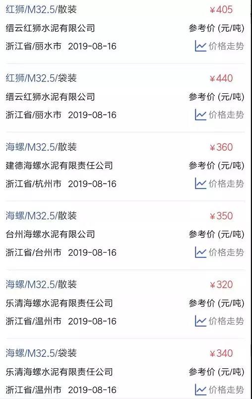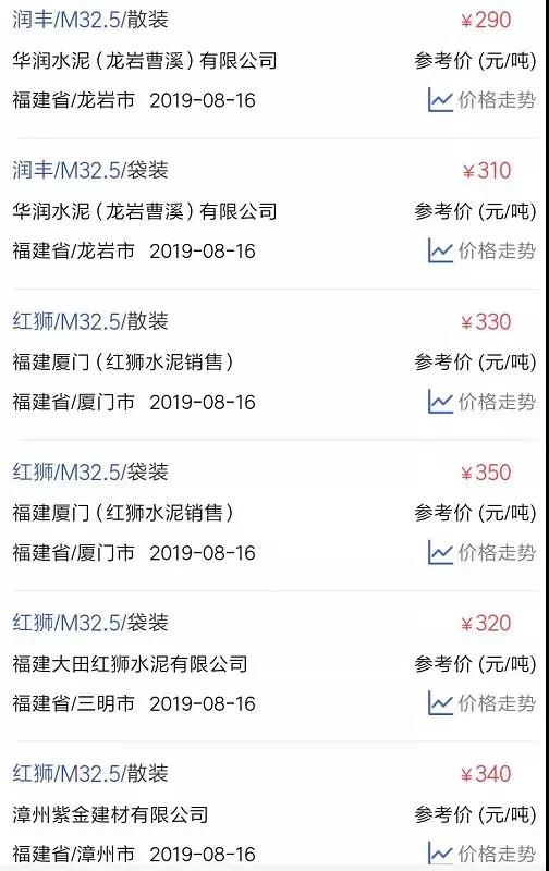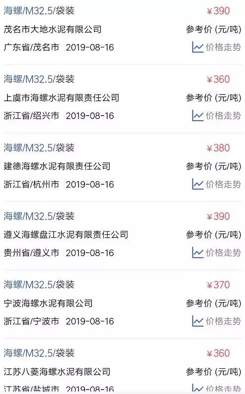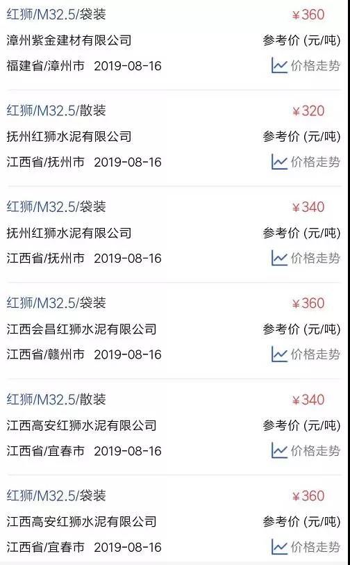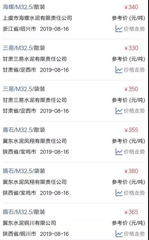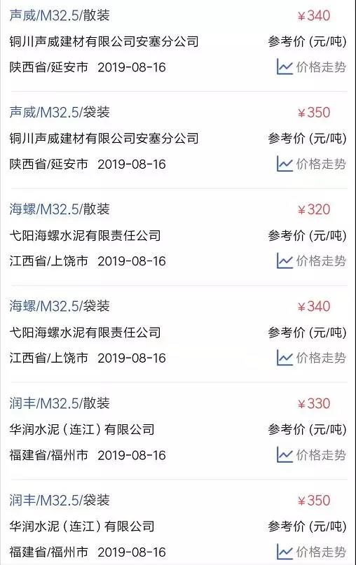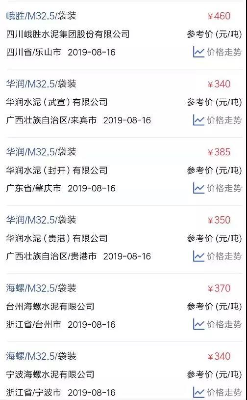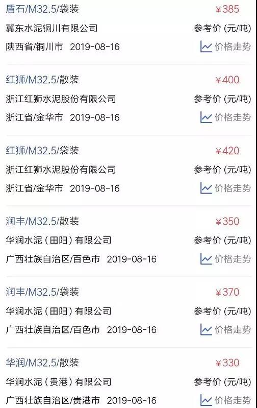 水泥人網(wǎng)信息中心PC32.5R水泥參考價(時間:2019年8月16日)