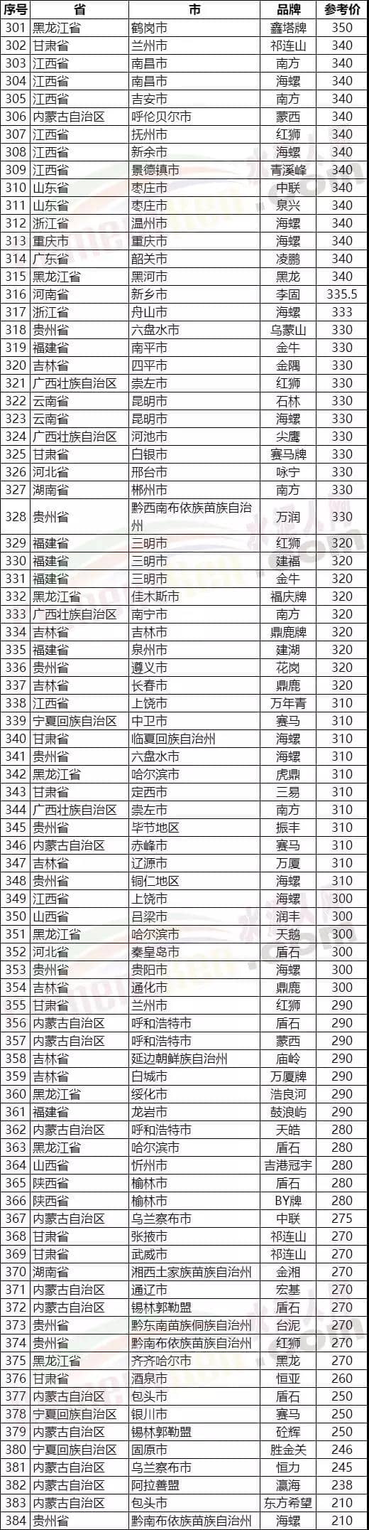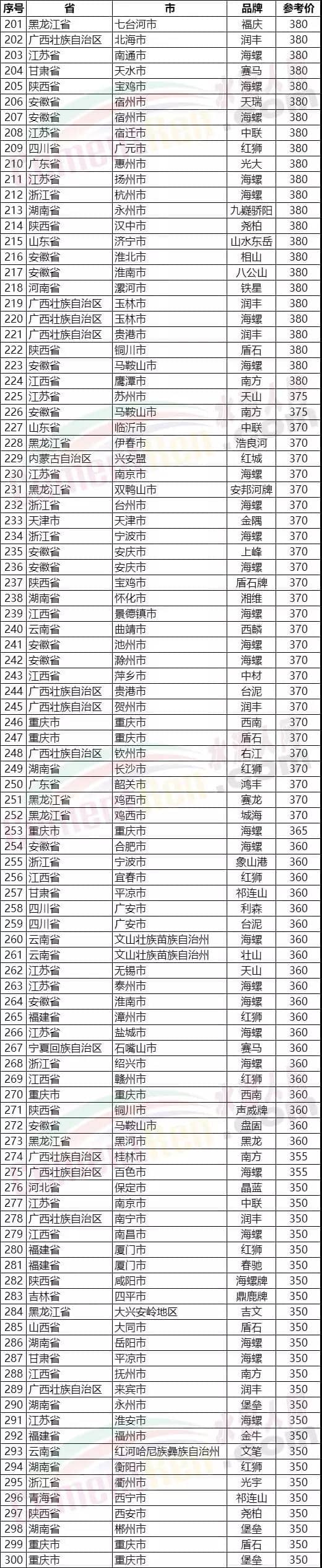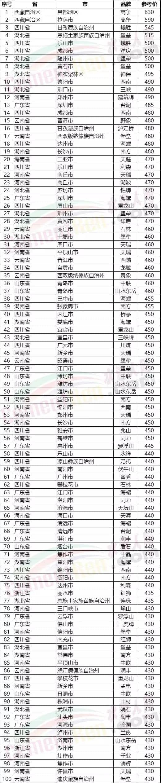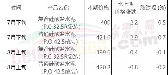 水泥人網(wǎng)信息中心PC32.5R水泥參考價(時間:2019年8月16日)
