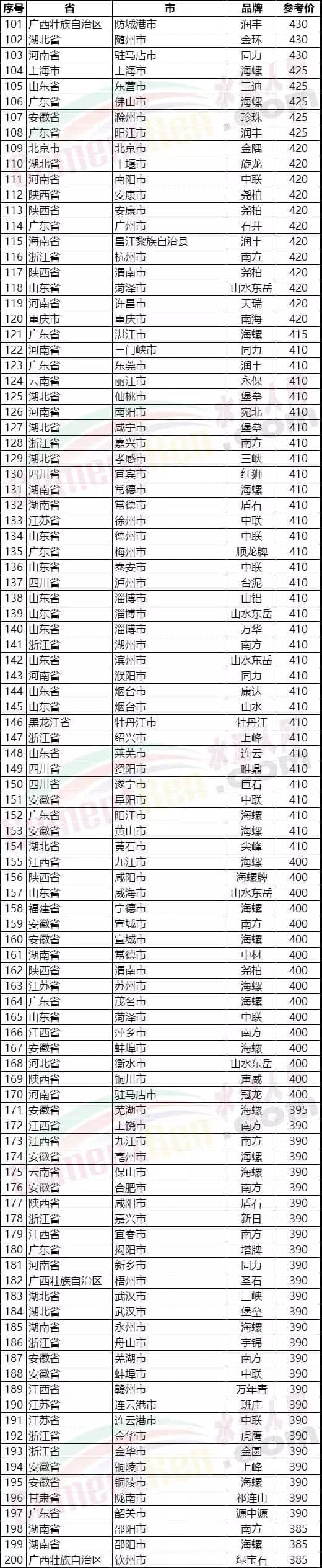 注:上述M32.5砌筑水泥價格數(shù)據(jù)來源于水泥人網(wǎng)信息中心數(shù)據(jù)庫。