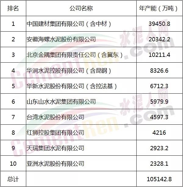 據(jù)水泥人網(wǎng)不完全統(tǒng)計,2018年全國水泥熟料產(chǎn)能17.16億噸,其中,全國水泥熟料前十強(qiáng)的熟料總產(chǎn)能約為10.51億噸,占全國水泥熟料產(chǎn)能的61.27%。