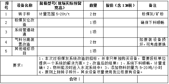 2、項目名稱:粉煤灰添加系統(tǒng)改造(含轉(zhuǎn)子秤等采購)