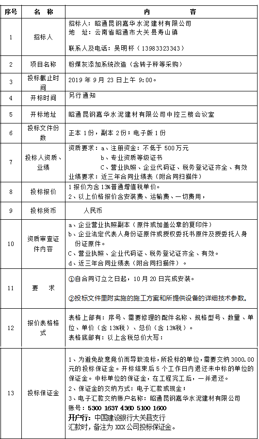 開標(biāo)地點:昭通昆鋼嘉華水泥建材有限公司中控三樓會議室(可電話議標(biāo))