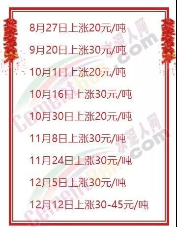 注:表內(nèi)報(bào)價(jià)為C30單價(jià),現(xiàn)款價(jià),不含稅,不含泵送。都說(shuō)年底是淡季,但年底同樣面臨著“雙十一”、“雙十二”、建筑行業(yè)趕工期和北方供暖材料儲(chǔ)備期,貨物吞吐空間巨大,再加之“無(wú)錫事故”后嚴(yán)格的治超力度,致使單車運(yùn)輸能力(都變標(biāo)載)下降,因此,未來(lái)兩個(gè)月,運(yùn)費(fèi)上漲仍有很大空間。面粉決定面包的價(jià)格,鋼筋水泥決定房子的價(jià)格!連二師兄都上漲的年代,你還祈求優(yōu)惠和賒銷嗎?一張圖告訴您建材產(chǎn)業(yè)鏈漲了多少!