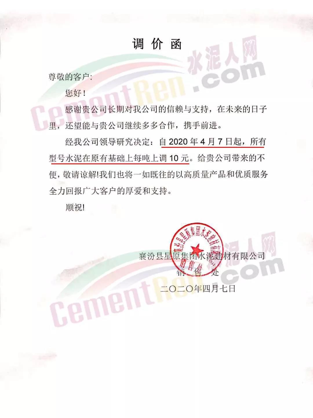 山西襄汾縣星原集團(tuán)水泥建材有限公司通知自4月7日起,所有型號(hào)水泥在原有基礎(chǔ)上上調(diào)10元/噸。4月11日,該公司再次發(fā)布通知,所有型號(hào)水泥和礦渣細(xì)粉在原有基礎(chǔ)上上調(diào)10元/噸,一周之內(nèi)連漲兩次。
