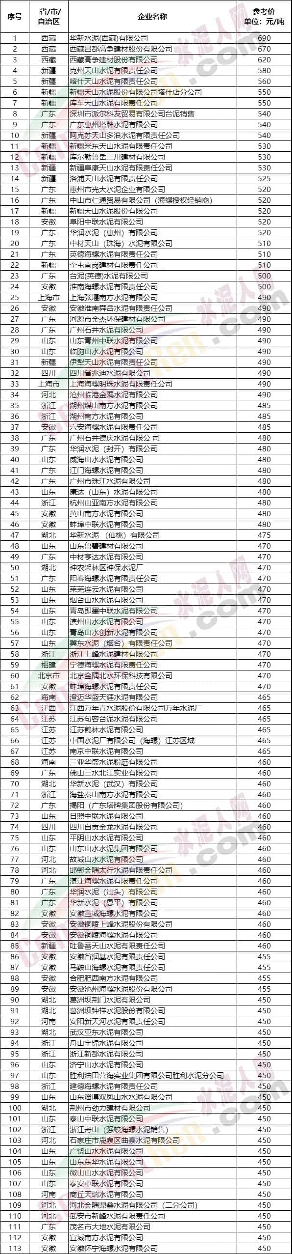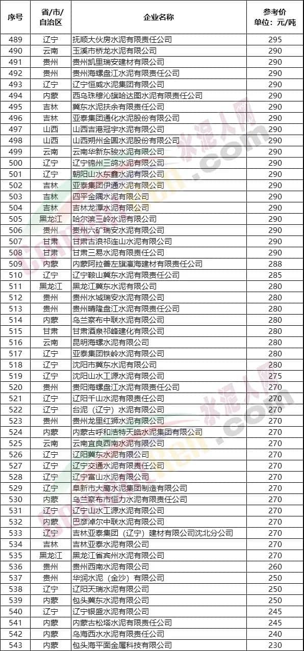 *注:上述數(shù)據(jù)來(lái)源于水泥人網(wǎng)信息中心人工采集,僅供參考,如與實(shí)際成交價(jià)格不符,請(qǐng)以實(shí)際成交價(jià)格為準(zhǔn)。