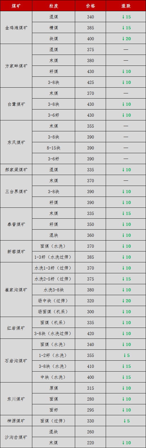 除此之外,崔星太也曾公開表示:我們既反對低價傾銷,也反對借需求增加哄抬物價,甚至形成市場壟斷,這兩種極端我們都要反對。我們要理性的看待市場的發(fā)展,維持市場的平穩(wěn)健康發(fā)展。煤炭價格跌入谷底,將現全行業(yè)虧損 在全國各地水泥價格出現下調的同時,煤炭行業(yè)的發(fā)展更讓人大跌眼鏡。據水泥人網了解,煤炭價格也跌至谷底。作為國內煤市風向標,此前,CCI5500現貨指數最新價格為486元/噸,為最近四年首次跌破綠色區(qū)間(500元至570元)。目前CCI5500現貨指數暫停發(fā)布,但從實際交易來看,目前煤炭現貨價格已經跌破470元/噸臨界點,步入紅色區(qū)間。