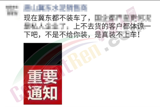 據(jù)水泥人網(wǎng)了解,應(yīng)此前唐山市豐潤區(qū)生態(tài)環(huán)境保護(hù)工作領(lǐng)導(dǎo)小組辦公室文件要求每日20時(shí)至次日8時(shí)禁止運(yùn)輸車輛進(jìn)入廠區(qū)內(nèi),并未停發(fā)水泥。部分企業(yè)因庫容量較小,為保供重點(diǎn)客戶對部分經(jīng)銷商客戶暫停供應(yīng)。
