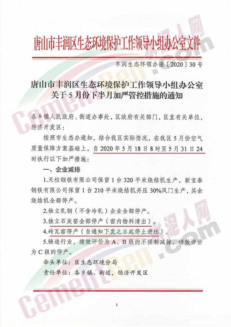 據(jù)了解,日前,河北省唐山市豐潤區(qū)發(fā)布通知要求重點(diǎn)工業(yè)企業(yè)自2020年5月18日8時(shí)至5月31日24時(shí)執(zhí)行加嚴(yán)管控措施。其中提到機(jī)動(dòng)車管控方面重點(diǎn)用車企業(yè)每日20時(shí)至次日8時(shí)禁止運(yùn)輸車輛進(jìn)入廠區(qū)。文件中針對工作要求特別強(qiáng)調(diào):