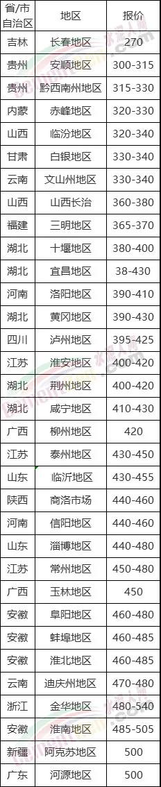 PO42.5散裝報(bào)價(jià)(單位:元/噸)