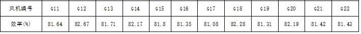 隨著水泥窯線能耗指標(biāo)要求的不斷提升,某大型水泥集團(tuán)下屬重點(diǎn)企業(yè)決定對(duì)其兩條5000t/d熟料線的篦冷機(jī)進(jìn)行四代機(jī)改造,其中一線篦冷機(jī)配套我司“睿暢”系列高效篦冷機(jī)冷卻風(fēng)機(jī)。項(xiàng)目于2020年3月底安裝完成,窯線正常運(yùn)行后對(duì)篦冷風(fēng)機(jī)進(jìn)行測(cè)試,實(shí)際運(yùn)行效率均在81%--83%之間,見(jiàn)下表。
