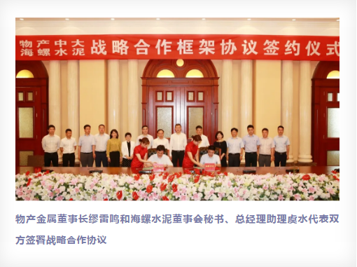 據(jù)了解,今年6月30日,物產(chǎn)中大集團(tuán)總裁、董事、黨委副書記宋宏炯率隊(duì)赴海螺水泥拜訪交流,并與海螺水泥簽署戰(zhàn)略合作協(xié)議。
