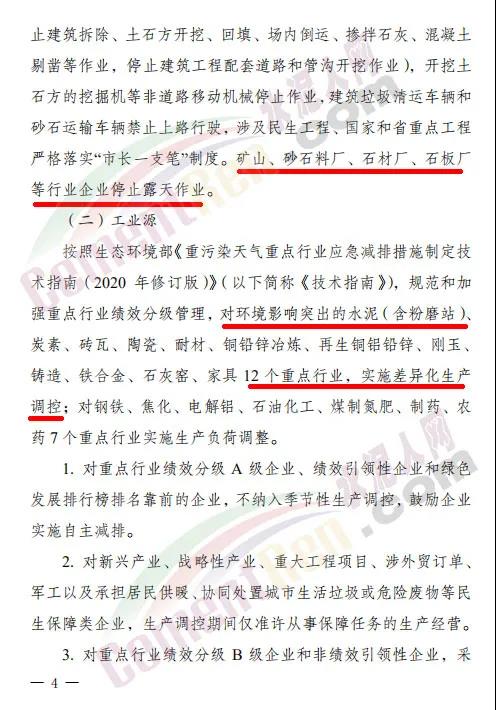 (二)工業(yè)源,規(guī)范和加強重點行業(yè)績效分級管理,對環(huán)境影響突出的水泥(含粉磨站)、炭素、磚瓦、陶瓷、耐材、石灰窯等 12 個重點行業(yè),實施差異化生產(chǎn)調控;對鋼鐵、焦化、電解鋁、石油化工等7 個重點行業(yè)實施生產(chǎn)負荷調整。