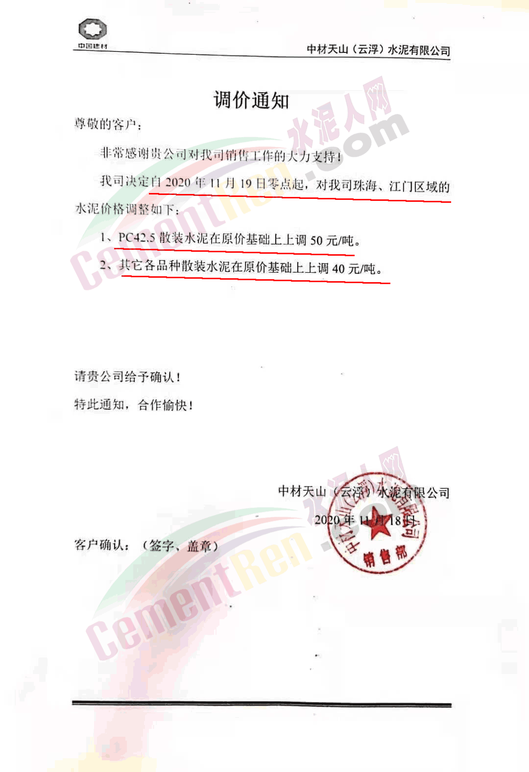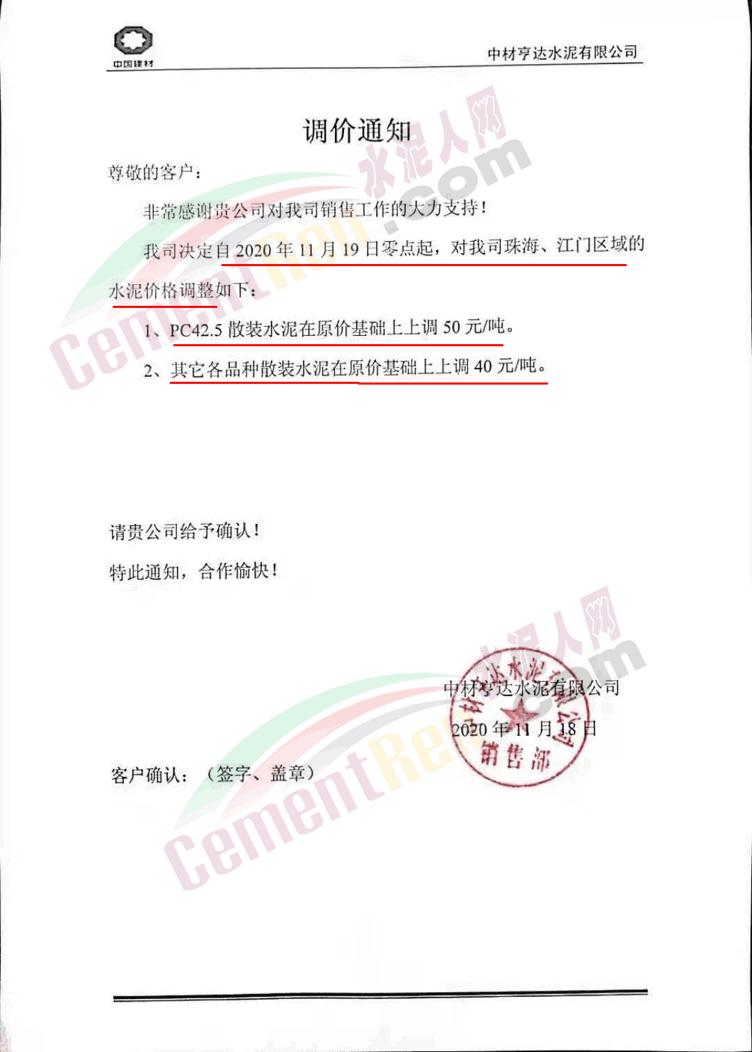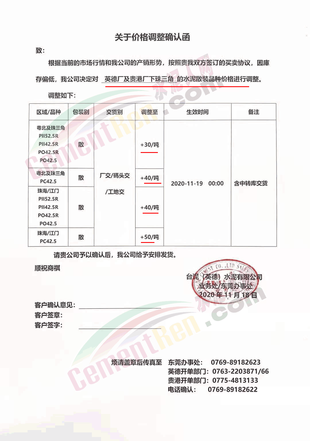 臺(tái)泥英德水泥有限公司通知,因庫(kù)存偏低,英德廠及貴港廠下珠三角的水泥散裝品種價(jià)格進(jìn)行調(diào)整 。其中粵北及珠三角區(qū)域高標(biāo)號(hào)散裝水泥上調(diào)30元/噸,PC42.5散裝水泥上調(diào)40元/噸。珠海/江門(mén)區(qū)域高標(biāo)號(hào)散裝水泥上調(diào)40元/噸,PC42.5散裝水泥上調(diào)50元/噸。自今日(19日)0時(shí)起執(zhí)行。調(diào)價(jià)含中轉(zhuǎn)庫(kù)交貨。