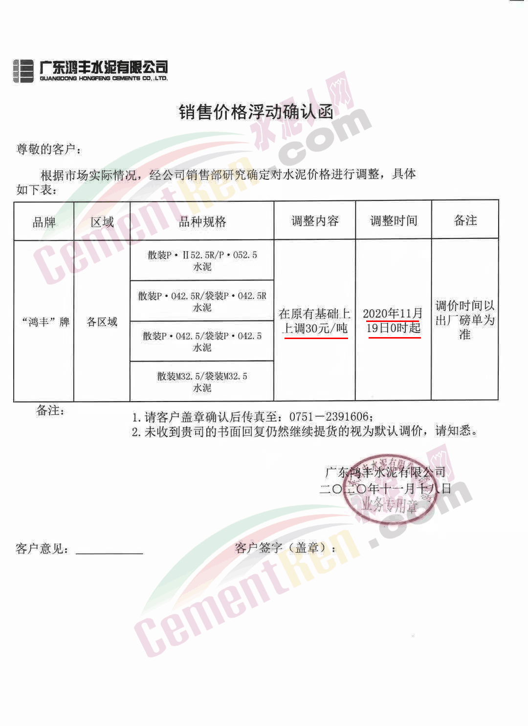 廣東鴻豐水泥通知自今日(19日)0時(shí)起,上調(diào)各標(biāo)號(hào)散裝水泥報(bào)價(jià)30元/噸。
