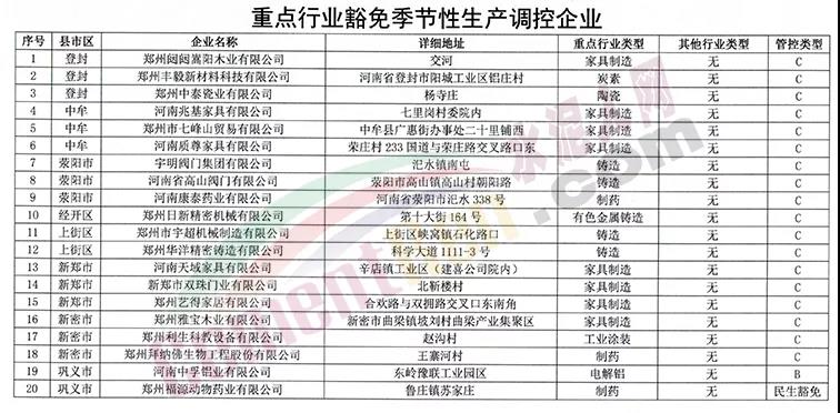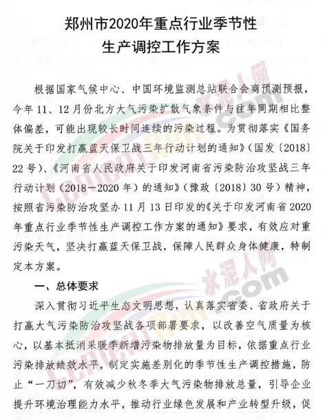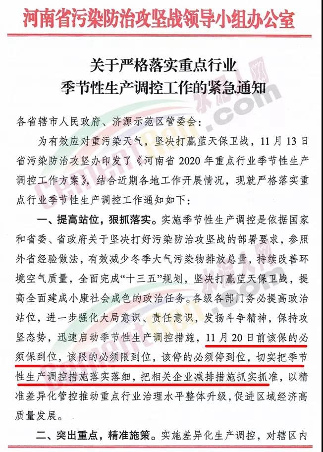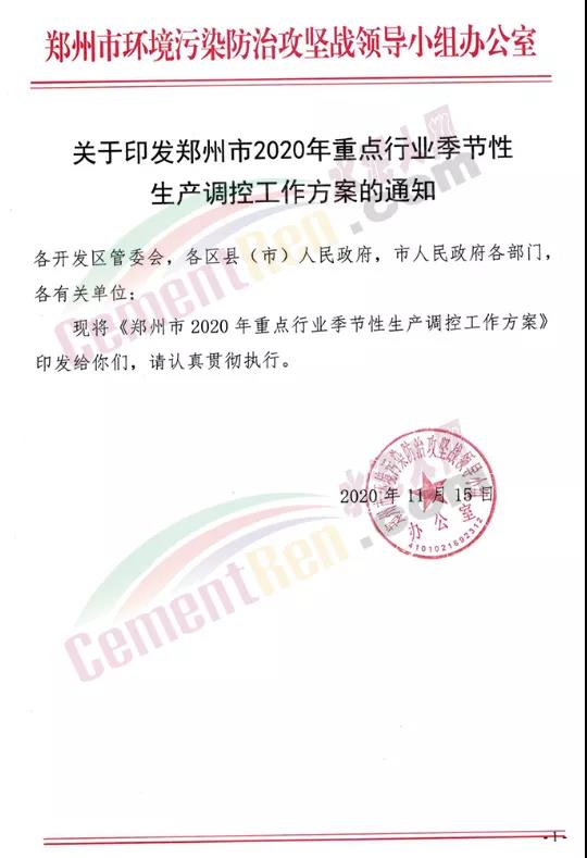 同期,河南鄭州市環(huán)境污染防治攻堅(jiān)戰(zhàn)領(lǐng)導(dǎo)小組辦公室發(fā)布《關(guān)于印發(fā)鄭州市2020年重點(diǎn)行業(yè)季節(jié)性生產(chǎn)調(diào)控工作方案的通知》稱,鄭州市于2020年11月15日至2020年12月31日期間實(shí)施重點(diǎn)行業(yè)季節(jié)性生產(chǎn)調(diào)控。