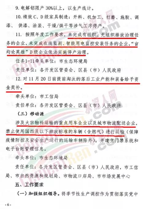 文件要求,按照年度工作要求,未完成有組織、無組織排放治理任務(wù)的企業(yè),未完成在線監(jiān)測、智能用電監(jiān)控安裝任務(wù)的企業(yè),“畝均論英雄” D級企業(yè)依法實(shí)施停產(chǎn)治理。