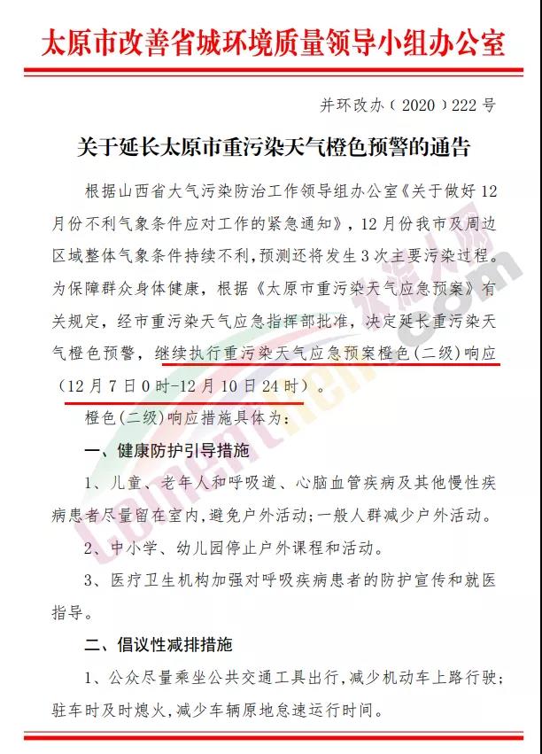 另有消息稱,12月6日晚,經(jīng)山西太原市重污染天氣應(yīng)急指揮部批準(zhǔn),太原市決定延長重污染天氣橙色預(yù)警,(12月7日0時(shí)至12月10日24時(shí))。