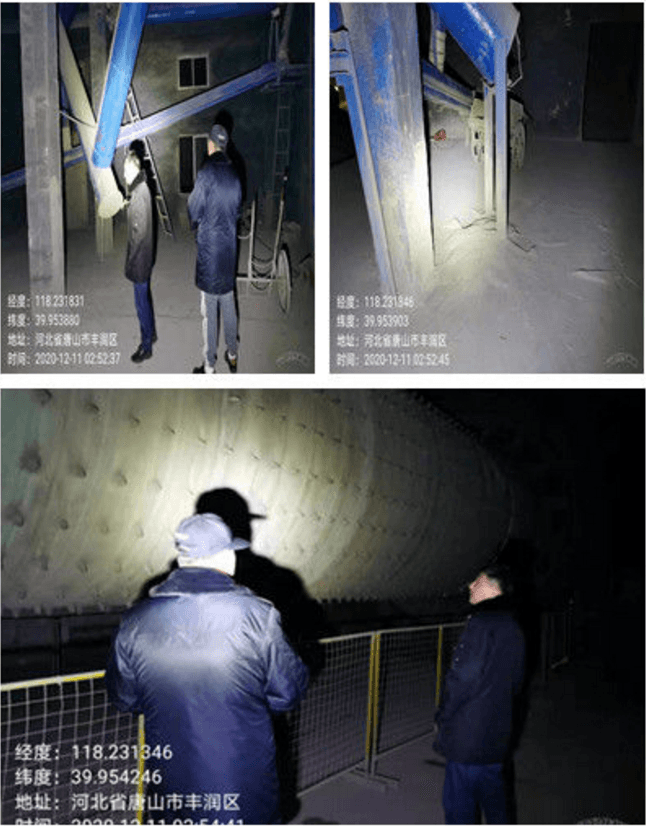 2020年12月10日凌晨檢查飛龍水泥,正在生產,破碎車間積塵較厚,立行立改。