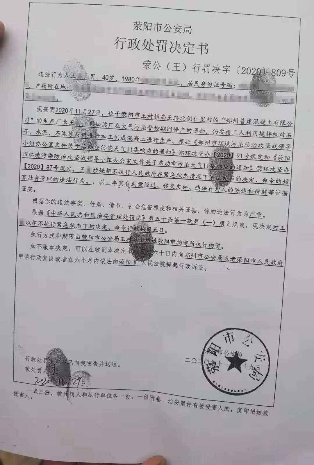早在10月份,唐山豐潤區(qū)冀龍水泥有限公司、唐山市豐潤區(qū)順鑫水泥有限公司、唐山金達水泥廠等多家企業(yè)因未執(zhí)行唐山市啟動的重污染天氣Ⅱ級預警應急響應減排措施。涉嫌環(huán)境違法分別被處以7萬元罰款,企業(yè)生產負責人也被處以行政拘留處罰。11月23日至12月2日,河南鄭州市持續(xù)對全市工業(yè)企業(yè)和建筑工地進行全方位督查,經督導組和公安部門核查,對5家未落實大氣污染管控措施、違法生產施工的單位負責人作出了拘留處罰決定。其中包括一家混凝土公司。 11月27日,位于滎陽市王村鎮(zhèn)仁里村的鄭州普建混凝土有限公司,未按照重污染天氣橙色預警管控要求,違反管控違規(guī)開啟混凝土攪拌生產線進行生產,滎陽市生態(tài)環(huán)境局監(jiān)察大隊王村中隊執(zhí)法人員發(fā)現(xiàn)問題后第一時間趕到現(xiàn)場進行調查取證,將相關問題移交給當?shù)毓矙C關,目前該企業(yè)實際經營人已被處以行政拘留5日的處罰。