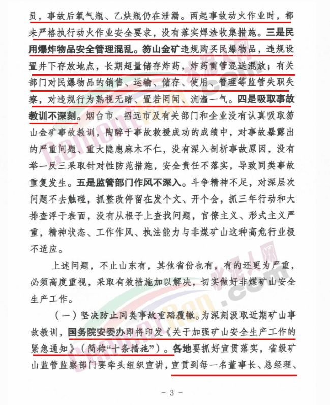 同時(shí)要深刻汲取事故教訓(xùn),加強(qiáng)動(dòng)火作業(yè)和爆破管理,加快推進(jìn)安全基礎(chǔ)提升,嚴(yán)格落實(shí)非煤礦山安全監(jiān)管責(zé)任,加大淘汰退出力度,堅(jiān)決防止同類事故重蹈覆轍。