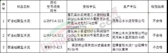 山東省濱州市市場監(jiān)督管理局公布2020年第2批產(chǎn)品質(zhì)量市監(jiān)督抽查結(jié)果顯示,有3家企業(yè)的3批次水泥抽查不合格。其中包括一個(gè)批次PO42.5水泥。