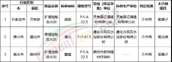 河北省市場監(jiān)督管理局公布的產(chǎn)品質(zhì)量監(jiān)督抽查結(jié)果中水泥檢出不合格樣品3批次,其中包括1個(gè)批次PO42.5水泥產(chǎn)品。不合格項(xiàng)目為氧化鎂。