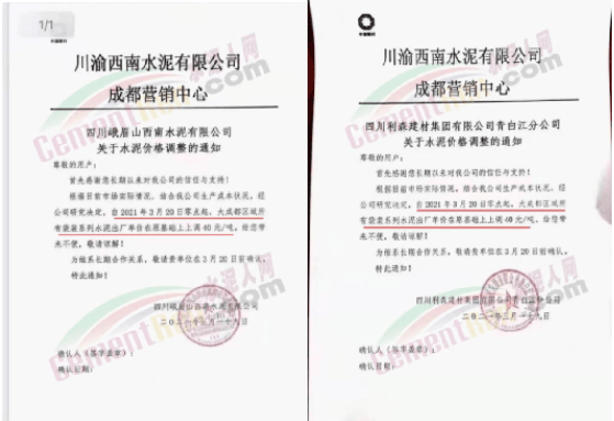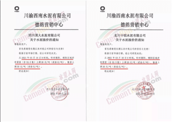 其中,渝西南水泥成都營銷中心下屬四川省女媧建材有限公司、四川利森建材集團青白江分公司、四川峨眉山西南水泥通知自3月20日零點起,大成都區(qū)域所有袋裝系列水泥出廠單價在原基礎(chǔ)上上調(diào)40元/噸;