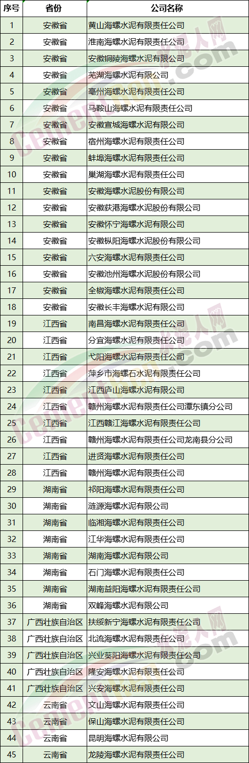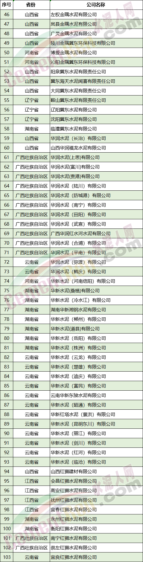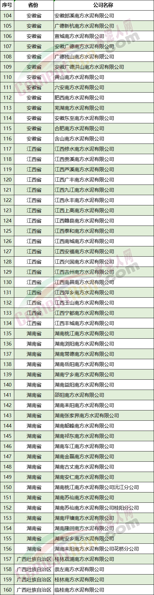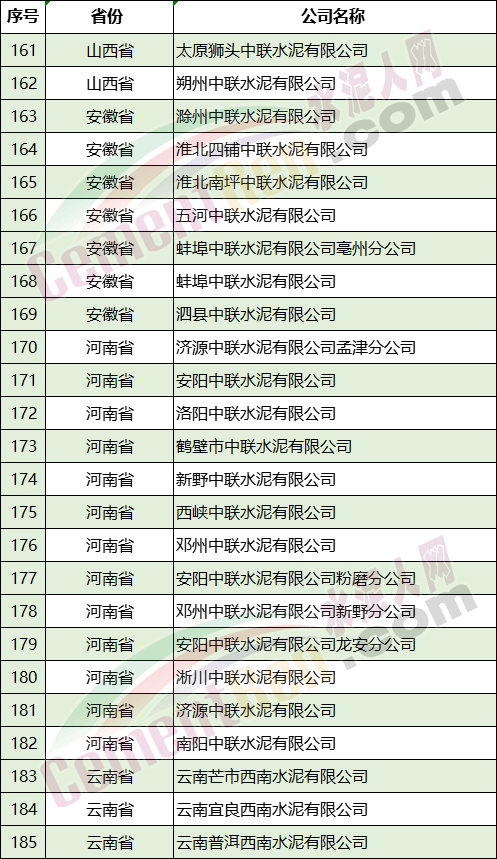 附:8省/自治區(qū)部分水泥企業(yè)名單