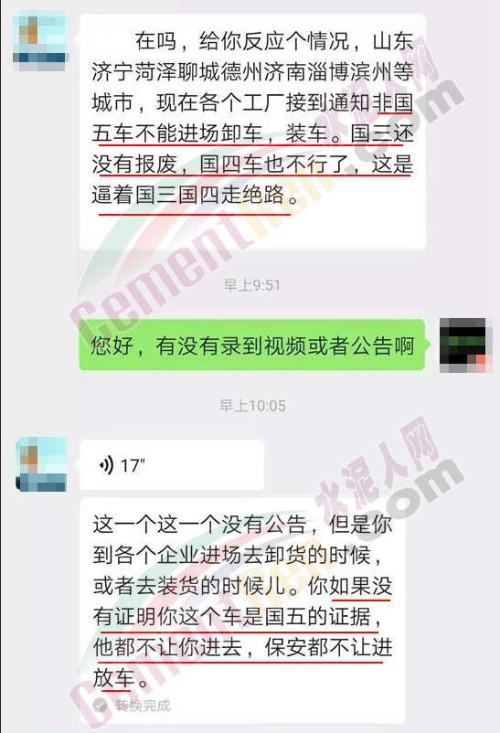 早在前年,就有水泥車司機(jī)向水泥人網(wǎng)反映稱:山東濟(jì)南、濟(jì)寧、菏澤、聊城等多個城市的各大工廠均不允許國五以下的貨車進(jìn)入裝卸。