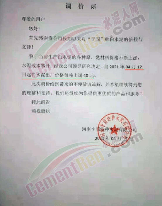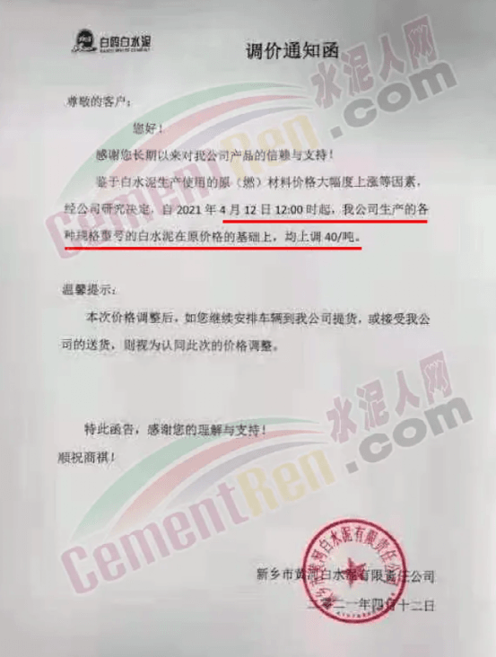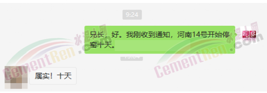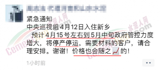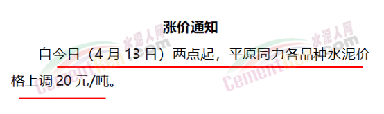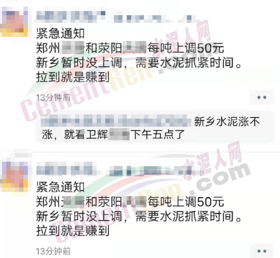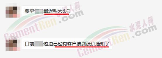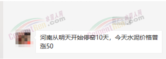與此同時(shí),經(jīng)銷商收到通知河南區(qū)域水泥價(jià)格自15日起上漲50元/噸的消息,且要求經(jīng)銷商于今日(15日)早8點(diǎn)前確認(rèn)完畢。