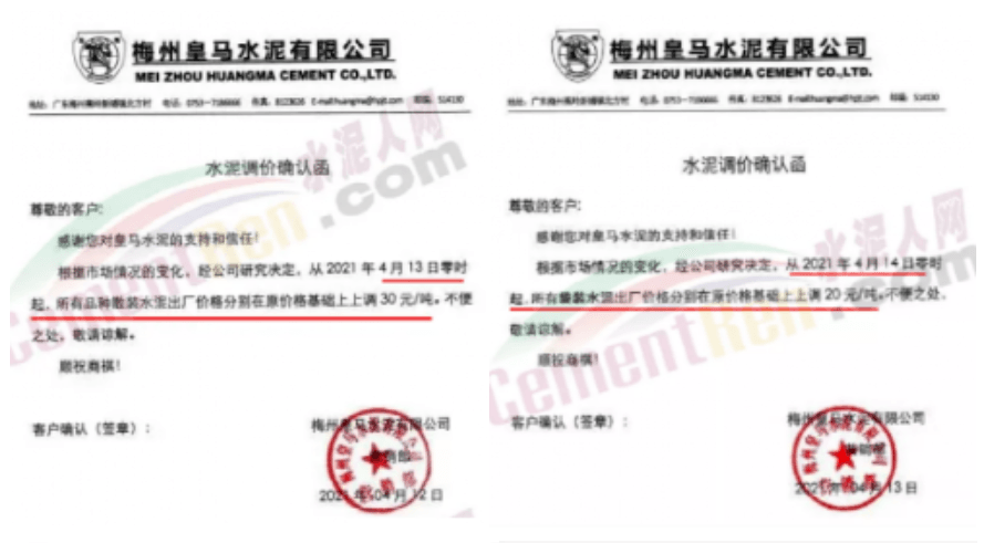梅州皇馬水泥有限公司、蕉嶺縣龍騰旋窯水泥有限公司分別于13日、14日分別上調(diào)袋裝水和散裝水泥價格,其中袋裝水泥上調(diào)20元/噸,散裝水泥上調(diào)30元/噸。