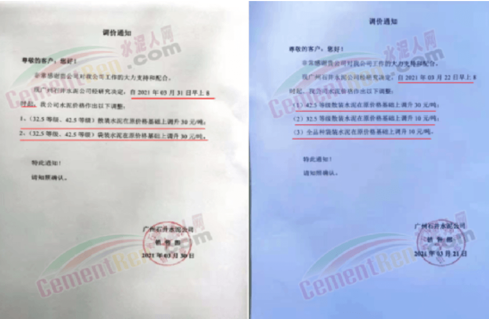 根據(jù)當前市場行情,我公司于2021年3月18日早8:00對32.5袋裝水泥上調(diào)20元/噸,42.5袋裝上調(diào)20元/噸。