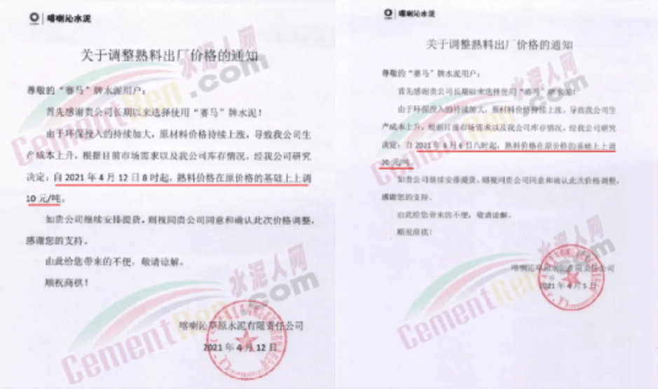 七日之內(nèi)兩次上調(diào)熟料價格,累計漲價30元/噸。企業(yè)調(diào)價函提到,由于環(huán)保投入的持續(xù)加大,原材料價格持續(xù)上漲,導致公司生產(chǎn)成本上升。