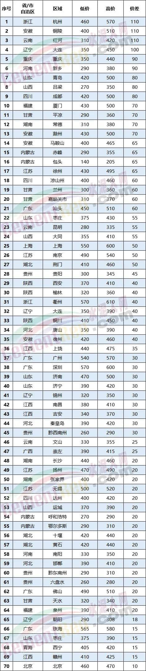 受兩大核心區(qū)域漲價輻射影響,相鄰區(qū)域紛紛發(fā)函上調(diào)水泥熟料價格。在一片漲價聲中,有一些不和諧的聲音。因部分企業(yè)未落實漲價,令區(qū)域內(nèi)出現(xiàn)不小的價格差。從水泥人網(wǎng)信息中心重點監(jiān)控的70個地區(qū)來看,價差最高的區(qū)域為浙江杭州、安徽銅陵、云南紅河、遼寧大連等區(qū)域,價差在100元/噸左右,最高價差在110元/噸左右。