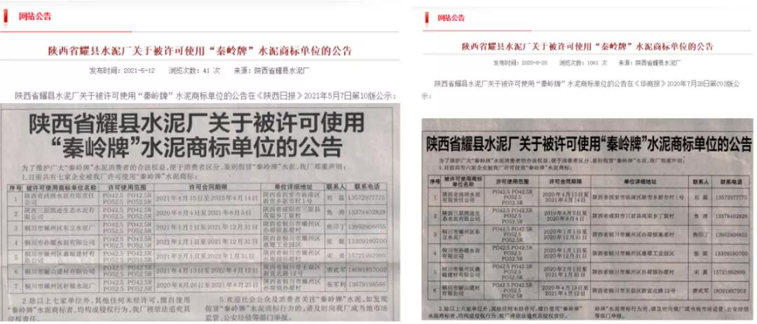 同時(shí),提請(qǐng)廣大“秦嶺牌”水泥用戶注意授權(quán)范圍,注意區(qū)分假冒“秦嶺牌”水泥,謹(jǐn)防受騙。歡迎社會(huì)公眾及消費(fèi)者關(guān)注“秦嶺牌”水泥,如發(fā)現(xiàn)假冒“秦嶺牌”水泥商標(biāo)行為的,請(qǐng)及時(shí)向耀縣水泥廠或當(dāng)?shù)厥袌?chǎng)監(jiān)管、公安經(jīng)偵等部門舉報(bào)。