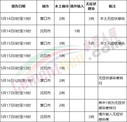 遼寧自5月14日開(kāi)始出現(xiàn)本土病例:5月14日,遼寧新增2例本土確診、3例無(wú)癥狀感染者;5月15日新增4例本土確診、5例無(wú)癥狀感染者;5月16日新增3例本土確診病例。5月17日新增4例本土新冠肺炎確診病例,新增3例境外輸入無(wú)癥狀感染者。