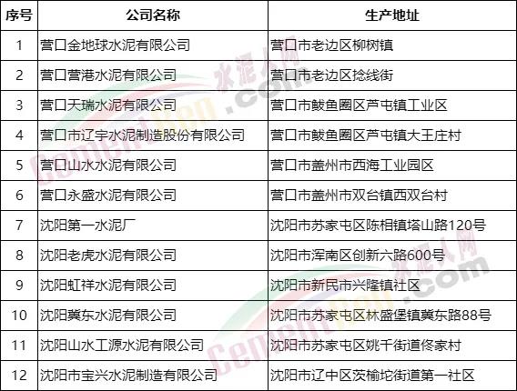 遼寧營(yíng)口、沈陽(yáng)兩市水泥企業(yè)名單