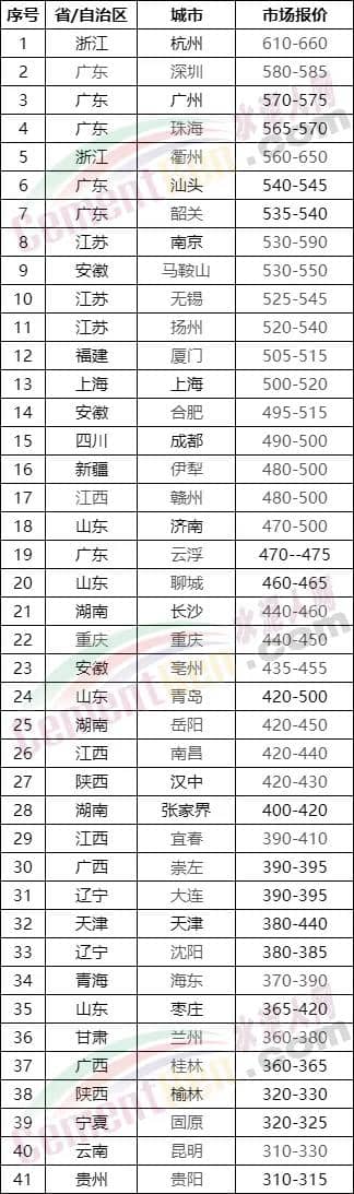 5月17日部分區(qū)域PO42.5散裝水泥市場(chǎng)報(bào)價(jià)