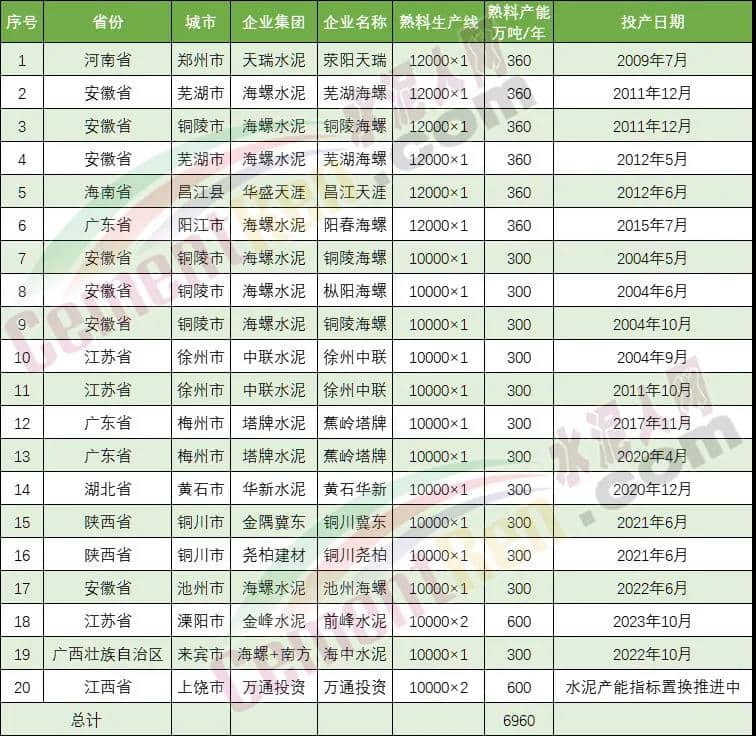 據(jù)水泥人網(wǎng)不完全統(tǒng)計(jì),截止目前已建成和在建、擬建日產(chǎn)10000噸熟料生產(chǎn)線已經(jīng)超過22條,合計(jì)產(chǎn)能達(dá)6960萬噸。