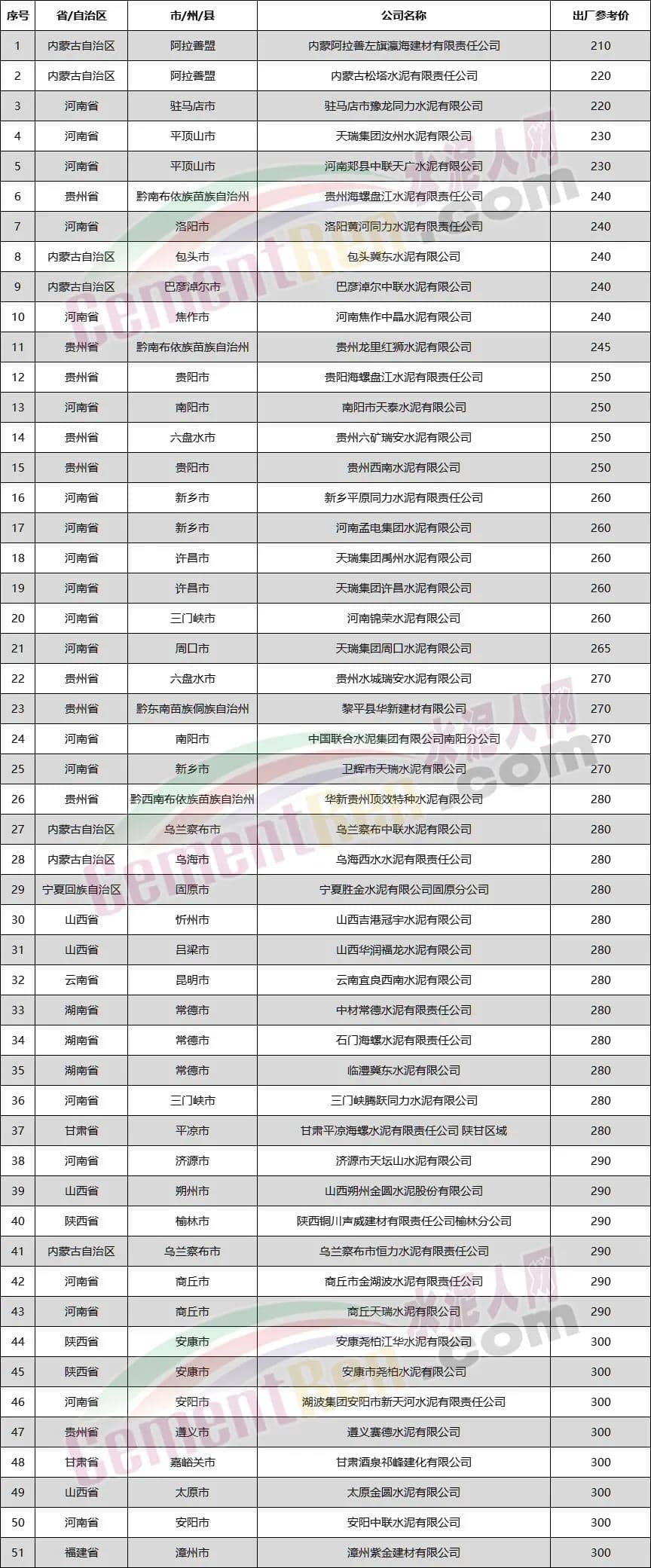 備注:以上數(shù)據(jù)來源于水泥人網(wǎng)信息中心,如有差池,請以實(shí)際數(shù)據(jù)為準(zhǔn)!