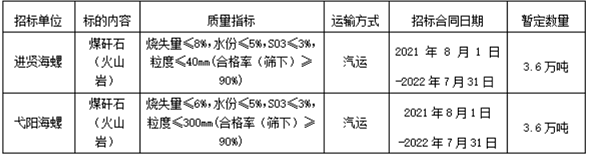 根據(jù)2021年8月-2022年1月進(jìn)賢海螺煤矸石需求,計(jì)劃進(jìn)行公開(kāi)招標(biāo),選定中標(biāo)人,為體現(xiàn)公平、公正、公開(kāi)的原則,拓寬采購(gòu)渠道,現(xiàn)將招標(biāo)相關(guān)事宜公告如下: