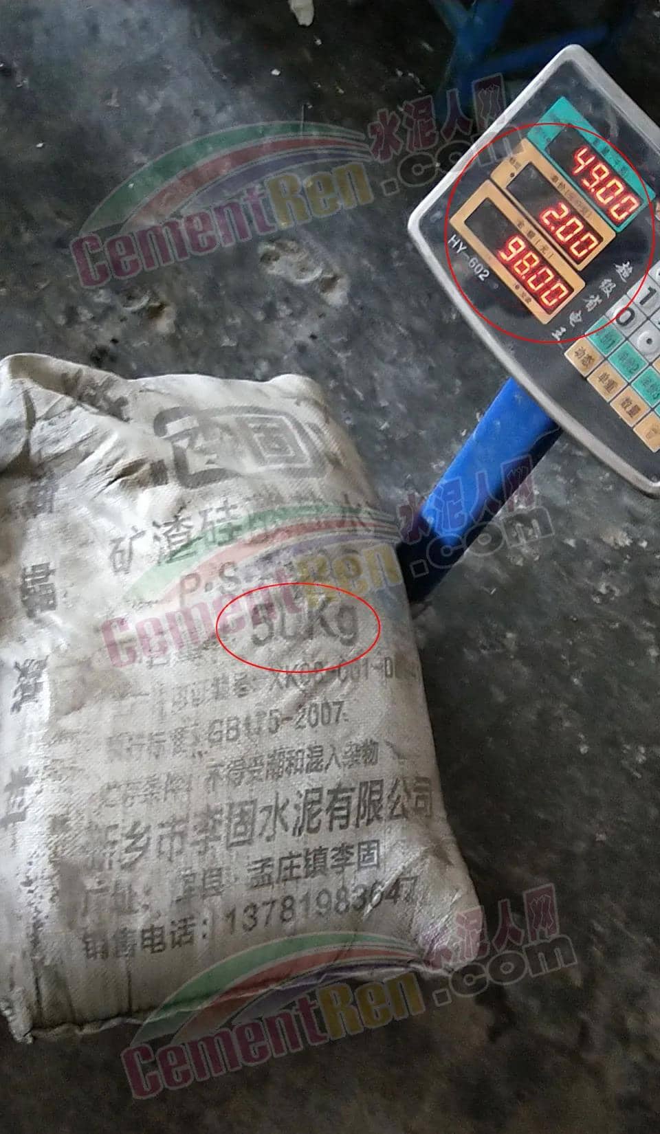 日前,水泥人網(wǎng)接到消費者投訴,稱其購買的水泥凈含量不合格,只有96斤。針對此事,水泥人網(wǎng)第一時間聯(lián)系了相關(guān)區(qū)域通訊員,通訊員反饋稱,這屬于“正常”現(xiàn)象,區(qū)域內(nèi)的多數(shù)的水泥都不足重。“這種凈含量八、九十斤的水泥都賣了多年了,大家已經(jīng)習(xí)以為常了。河南商丘周口鹿邑多是八十多斤的,要多少斤給裝多少,完全定制生產(chǎn)。我們經(jīng)常在市場上轉(zhuǎn),安徽、河南、山東很多牌子都是定制的九十七、八斤的,而且還可以仿制任何牌子。(如下圖,部分缺斤少兩,山寨名牌水泥)。