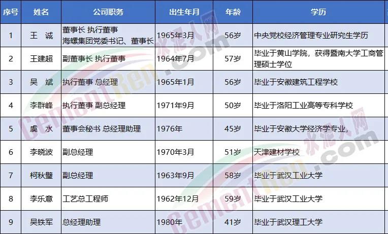 上市公司數(shù)據(jù)庫顯示,吳斌先生,1965年1月出生,現(xiàn)年56歲。海螺水泥上市公司執(zhí)行董事、總經(jīng)理,高級經(jīng)濟(jì)師。