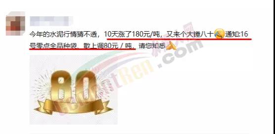 400、500、600、700、800......“天價(jià)水泥”的傳說在各地陸續(xù)上演,有經(jīng)銷商調(diào)侃稱,“這樣下去水泥要成金泥論克賣了”。商混攪拌站經(jīng)營者則說“水泥瘋了,完全就是無序漲價(jià),一日兩漲,兩日一漲,一漲上百,完全顛覆下游企業(yè)的認(rèn)知”。